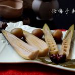 制作话梅用芒种后采摘的黄熟梅子,俗称黄梅。黄梅从树上采下来洗净后,放在大缸里用盐水泡浸月余,取出晒干;晒干后再用清水漂洗,再晒干;然后用糖料泡腌,再晒干―――如此多次反复,可谓是“十蒸九晒,数月一梅”,最后成为肉厚干脆、甜酸适度的话梅。这种话梅如果贮藏得好,防潮防蛀,可保存数年而不变质。
