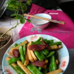 刀豆,别名挟剑豆,野刀板藤,葛豆,刀豆角。刀豆属于豆科,因豆荚形似刀而得名“刀豆”。又因荚形似人挟剑横斜,故又名“挟剑豆”。主要品种有蔓性、矮性两种。蔓性刀豆,亦称“大刀豆”、“中国刀豆”、“关刀豆”、“马刀豆”、“刀鞘豆”、“刀巴豆”。一年生草本,茎蔓生,复叶,小叶3片,自叶腋抽生花轴,其上开较大的蝶形花数朵,花紫