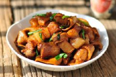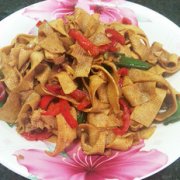 千张,即成百上千枚豆面张开后结合在一起,我国北方称为豆腐皮,在南方也叫百叶。它是一种特殊的豆制食品,是一种薄的豆腐干片,色白,可凉拌,可清炒,可煮食。湖北有名菜“千张肉丝”,即以千张为原料。千张的叫法见于赣、苏南、皖地区,苏北地区称为百叶,有异曲同工之妙。