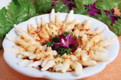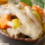 鸡爪 也称“鸡掌”“凤爪”“凤足”。多皮、筋,胶质大。常用于煮汤,也宜于卤、酱。如:卤鸡爪、酱鸡爪。质地肥厚的还可煮熟后脱骨拌食,如:椒麻鸡掌、拆骨掌翅,皆脆嫩可口。 鸡爪在美食家的菜谱上不叫鸡爪,而称做凤爪,在南方,凤爪可是一道上档次的名菜,其烹饪方法也较复杂。