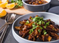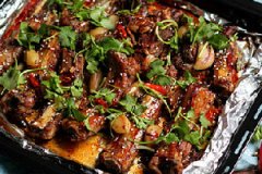 肋排又名猪小排。猪小排是指猪腹腔靠近肚腩部分的排骨,它的上边是肋排和子排。小排的肉层比较厚,并带有白色软骨。味甘咸、性平,入脾、胃、肾经。