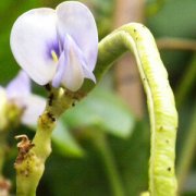 豇豆(Cowpea)一年生缠绕草本,无毛,学名:Vigna unguiculata (Linn.)Walp,俗称角豆、姜豆、带豆。豇豆分为长豇豆和饭豇两种小叶3,顶生小叶菱状卵形,长5—13厘米,宽4—7厘米,顶端急尖,基部近圆形或宽楔形,两面无毛,侧生小叶斜卵形;托叶卵形,长约1厘米,着生处下延成一短距。总状花序腋生;萼钟状,无毛;花冠淡紫色,长约2厘米,花柱上部里面有淡黄色须毛。荚果线形,下垂,长可达40厘米。花果期6—9月。