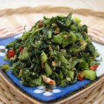 芥菜(学名:Brassica juncea),是芸苔属一年生或二年生草本。是中国著名的特产蔬菜。芥菜的主侧根分布在约30厘米的土层内,茎为短缩茎。叶片着生短缩茎上,有椭圆、卵圆、倒卵圆、披针等形状。叶色绿、深绿、浅绿 、黄绿、绿色间紫色或紫红。叶面平滑或皱缩。叶缘锯齿或波状,全缘或有深浅不同、大小不等的裂片。花冠十字形,黄色,四强雄蕊,异花传粉,但自交也能结实。种子圆形或椭圆形,色泽红褐或红色。中国有极其丰富的子用、叶用、茎用、芽用和根用芥菜的变种和品种。