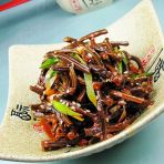 蕨菜为蕨类植物蕨还处于卷曲未展时的嫩叶,蕨菜是野菜的一种。它所烹制的菜肴色泽红润、质地软嫩、清香味浓,而且富含氨基酸、多种维生素、微量元素,还包括蕨素、蕨甙、甾醇等特有的营养素,被称为“山菜之王”,而且是不可多得的野菜美味。蕨菜可鲜食,但较难以保鲜,所以市场上常见其腌制品或干品,现在我国蕨菜大量用于出口