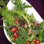 苦菊进入初夏后会开蓝色小花,是清晨绽放、晚上闭合的一日型香草,但能够连续不断的开展。叶有苦味,软化后苦味减少而柔软,性喜冷凉气候,初夏抽花茎,花和嫩叶可加入色拉,或炒熟食用,有抗菌、解热、消炎、明目等作用。