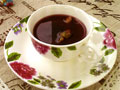玫瑰属于蔷薇科,原名徘徊花,它有甜美的香气,是食品、化妆品中香气的主要添加剂,也是红茶窨花的主要原料。玫瑰窨制花茶,早在明代《茶道》中就有详细的记载。而且饮食中使用玫瑰花的记载,则早在宋代时期,那时中国民间就有用糖腌渍玫瑰花瓣而制成的“玫瑰花酱”。