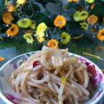 芽菜是用芥菜的嫩茎划成丝腌制而成,分咸、甜两种。咸芽菜产于四川的南溪、泸州、永川,创始于1841年;甜芽菜产于四川的宜宾,古称“叙府芽菜”,创始于1921年,现畅销于四川及京、津、沪等地。宜宾芽菜要求色褐黄,润泽发亮,根条均匀,气味甜香,咸淡适口,质嫩脆。无菜叶、老梗、怪味、霉变。咸芽菜色青黄,润泽,根条均匀,质嫩脆,味香,咸淡适口,无老梗、怪味、霉变。
