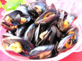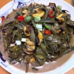 北方称海虹,南方称淡菜。淡菜是海蚌的一种,又名贻贝,煮熟去壳晒干而成,因煮制时没有加盐,故称淡菜。淡菜味道极鲜,营养也很丰富,它所含蛋白质、碘、钙和铁都比较多,但所含脂肪很少。产于浙江、福建、山东、辽宁等省沿海。以身干、色鲜,肉肥者为佳。