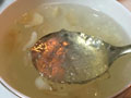 为雨燕科动物金丝燕及多种同属燕类用唾液与绒羽等混合凝结所筑成的巢窝,形似元宝,窝外壁由横条密集的丝状物堆垒成不规则棱状突起,窝内壁由丝状物织成不规则网状,窝碗根却坚实,两端有小坠角,一般直径6~7厘米,深3~4厘米。主要产于我国南海诸岛及东南亚各国。