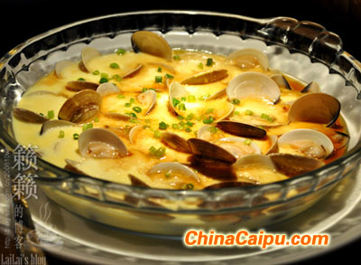 注:蒸蛋用不完的煮蛤水别倒掉了,加几片白菜叶子进去煮,就又是一道清甜的快手汤。