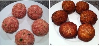 2、将已经拌出了香味的馅儿捏吧捏吧成圆子,放置一边待用;
