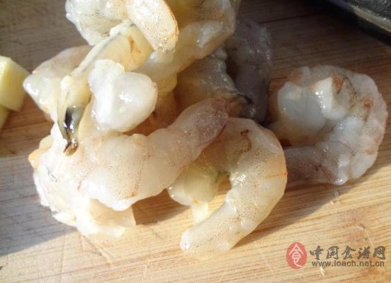 6、下入虾仁(我这样是图省事,你可以事先滑油处理)翻炒至虾仁变色