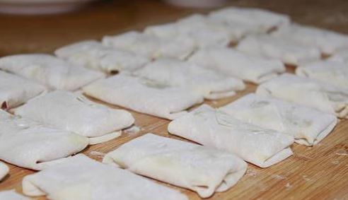 3、取一大馄饨皮放面板上,如图所示折起来,以此类推
