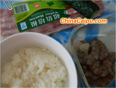 洗净,切小丁;虾仁洗净,切小丁。