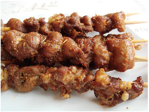 巧用微波炉速成羊肉串做法: