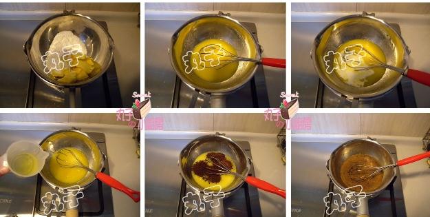 2.熄火后加入牛奶,用打蛋器搅拌均匀至稍微冷却;