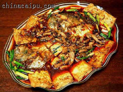 做法 :两大匙油烧热,放入"香辣鱼味理"酱炒至香气四溢,放肉丝稍炒后加入三饭碗高汤烧开,加入鱼,