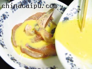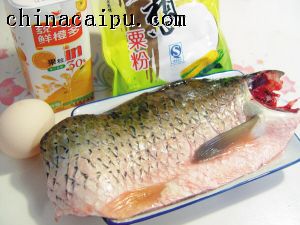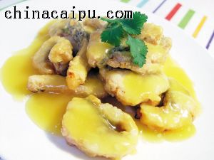 材料:鲩鱼腩(310克)、鲜橙汁(120克)、鸡蛋(2只)、玉米粉(50克)
