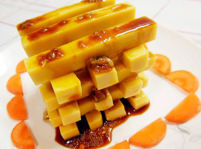 26、码放成椽子堆放的样子,美观、别致,料汁易沾满每条肉冻。