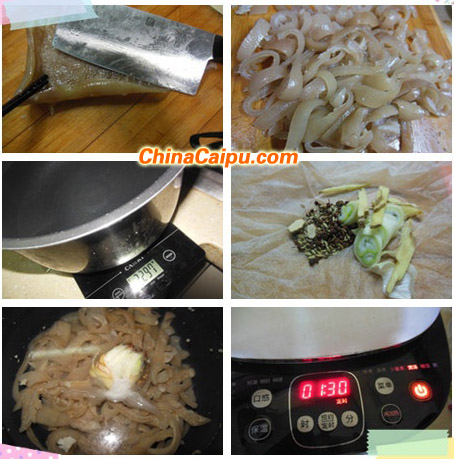 6、下入凉水锅中开锅3分钟,捞出冲水。