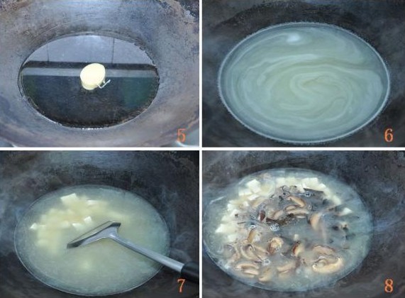 6、大火烧开,浓汤宝全部融化。