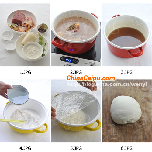 原料:高筋面粉200克 牛肉250克 鸡架1/4只 白萝卜50克 香菜2根 大葱3片 姜2片 桂皮1段 大料1个 草果1个 花椒6粒 香叶1片 白胡椒粒30粒 小茴香5克
