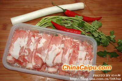 主料:肥羊卷,大葱,红辣椒,香菜1