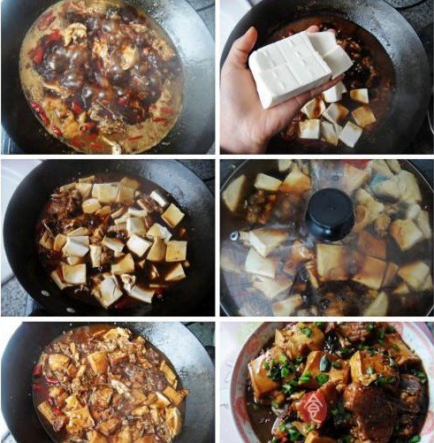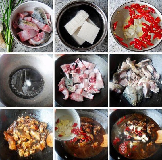 7、轻轻将豆腐和鱼拌匀,盖上盖子中小火烧20分钟。最后大火收一下汤汁,不要收干,鱼汤拌饭可好吃了。前面用盐腌过,所以不用再加盐,味精我也很少用。