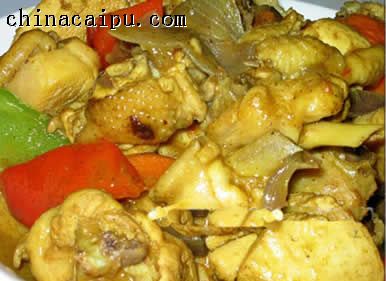 1、光鸡一只斩块,用少量油加姜片爆香,放入鸡块料酒翻炒,
