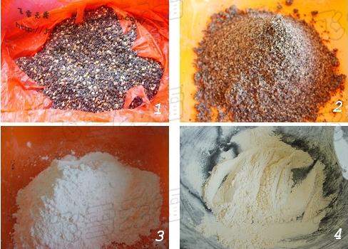 2, 搅拌机里打成粉状,没有搅拌机用擀面杖也行,或者酒瓶压,很香的